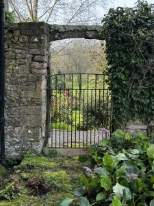 The lowest gate in the garden is 1.37m (4’6″), though most of the garden has a wall that is over 2 metres high. See the photos below. The Dog Waste bin is on the ground floor of the Welsh Gatehouse. NB Deliveries for Courtyard House (our home at the other end of the garden) come in through a completely different entrance, at the back of the house.