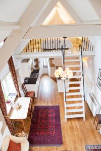 There is a spiral staircase (part stone, part wood) which all guests, including your dog(s), will need to use to access the property. You are responsible for ensuring your dog can safely go up and down the staircase. Please be aware that the steps may be uneven or slippery. We cannot accept responsibility for any injury to your dog while they are in the Welsh Gatehouse, or for any damage caused while using the stairs. For safety, we recommend carrying smaller dogs and closely supervising larger dogs when using the staircase