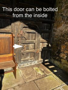 The only entrance to the Courtyard Garden that is used is the small door set into the large wooden gates. You can bolt this from the inside whilst your dog(s) is in the garden. This stops anyone from entering the garden from outside. Please unbolt it when you go back inside the Gatehouse living area.